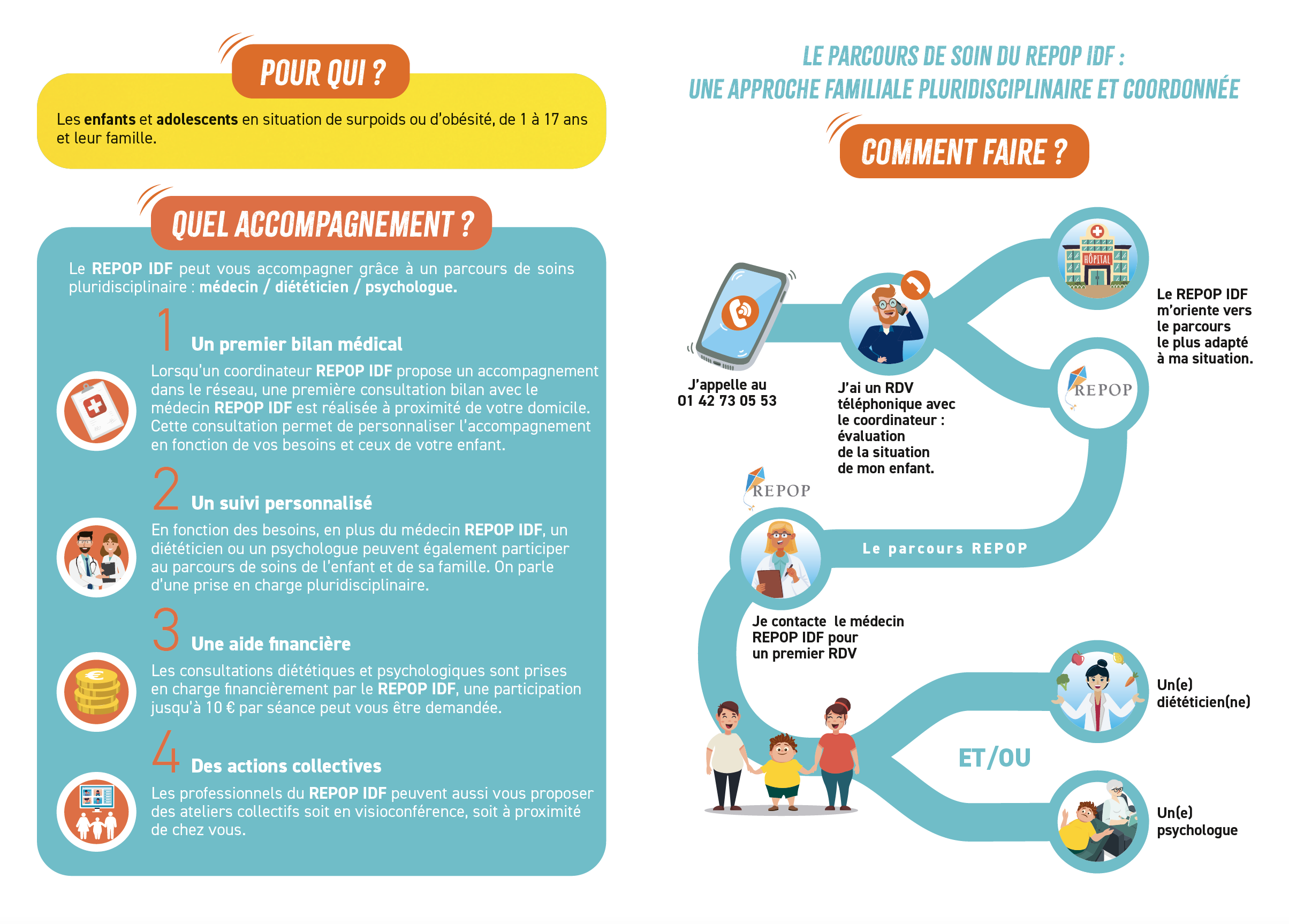 Le réseau REPOP Île-de-France (Réseau pour la Prise en charge et la Prévention de l’Obésité Pédiatrique) a confié à Ludodago la création d’un dépliant 4 pages simple, clair et bienveillant, destiné aux familles concernées par le surpoids ou l’obésité d’un enfant. Une petite mission c’est sûr, mais pas si simple que cela… et puis, nous sommes fiers que notre ancienne cliente de la Pitié Salpétrière en centre obésité adultes pense à nous une fois arrivée à Necker pour parler d’obésité pédiatrique.