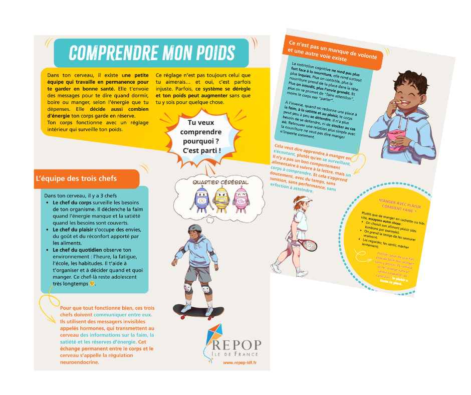 Un message central traverse l’ensemble des supports pédagogiques :ble poids ne dépend pas uniquement de la volonté individuelle.Les fiches rappellent que le corps, les gènes et l’environnement jouent un rôle important, et que l’objectif est d’apprendre à comprendre ses sensations plutôt que de contrôler son alimentation à tout prix. Cette approche vise à sortir des discours culpabilisants et à aider les jeunes à retrouver une relation plus sereine avec l’alimentation.